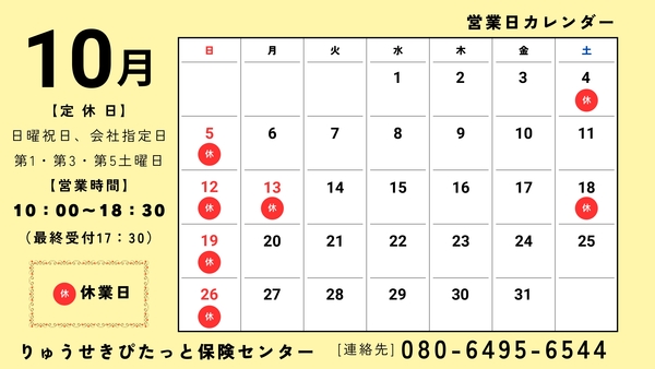 マチナト店 10月営業スケジュール
